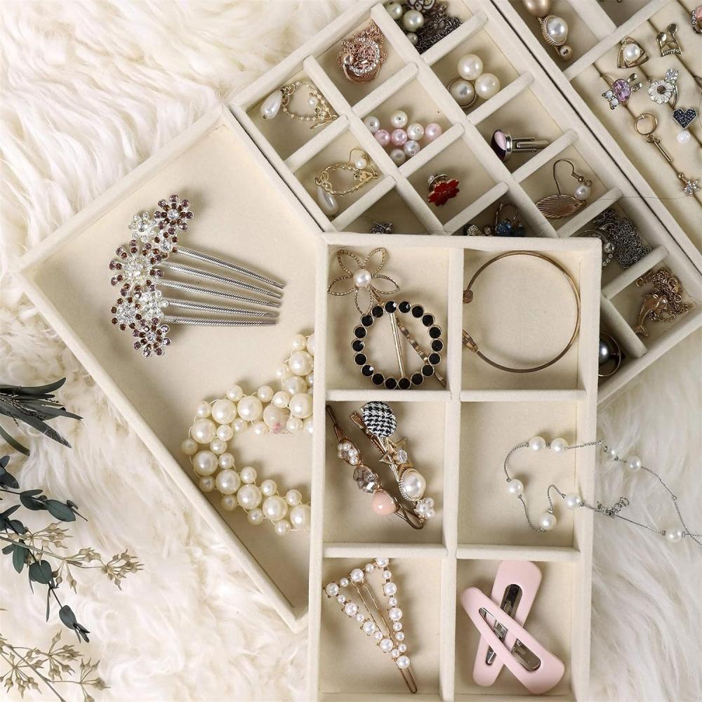 مع هذا الطقم المنظم، لن تعاني من فوضى المجوهرات أبدًا. يمكنك ترتيب الأقراط في درج واحد، والخواتم في درج آخر، والأساور في درج ثالث. يتميز الأدراج ببطانة مخملية فاخرة تحمي المجوهرات من الخدوش والتلف. كما يتميز الطقم بقابلية التخصيص، حيث يمكنك تركيب وإزالة الأدراج بسهولة لتلبية احتياجاتك الفردية.