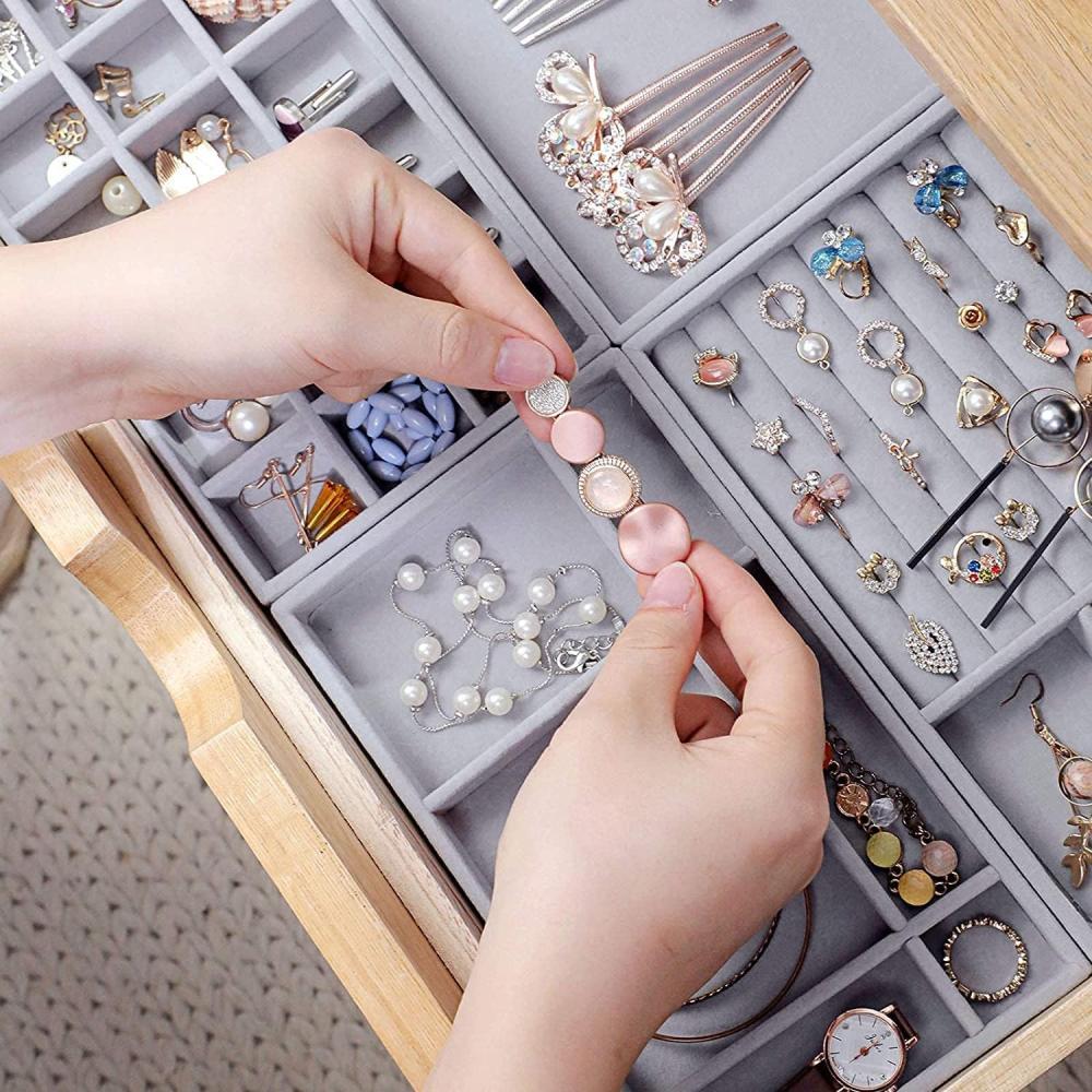 استمتعي بالأناقة والعملية مع طقم منظم درج المجوهرات هذا. احصلي عليه الآن وأضيفي لمسة منظمة وراقية إلى روتينك اليومي.