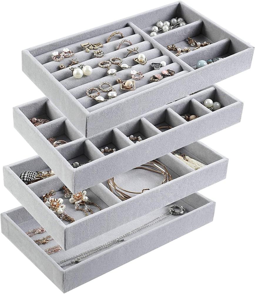 يوفر طقم منظم درج المجوهرات الرمادي هذا حلاً أنيقًا وعمليًا لتنظيم مجموعتك المتنوعة من الاكسسوارات والمجوهرات. مصنوع من مادة عالية الجودة، وهو يتألف من 4 قطع لتخزين الأقراط والخواتم والأساور بشكل منفصل وآمن. تتميز الأدراج بتصميم قابل للإزالة، مما يتيح لك سهولة الوصول إلى العناصر المخزنة وتنظيمها وفقًا لتفضيلاتك الشخصية.